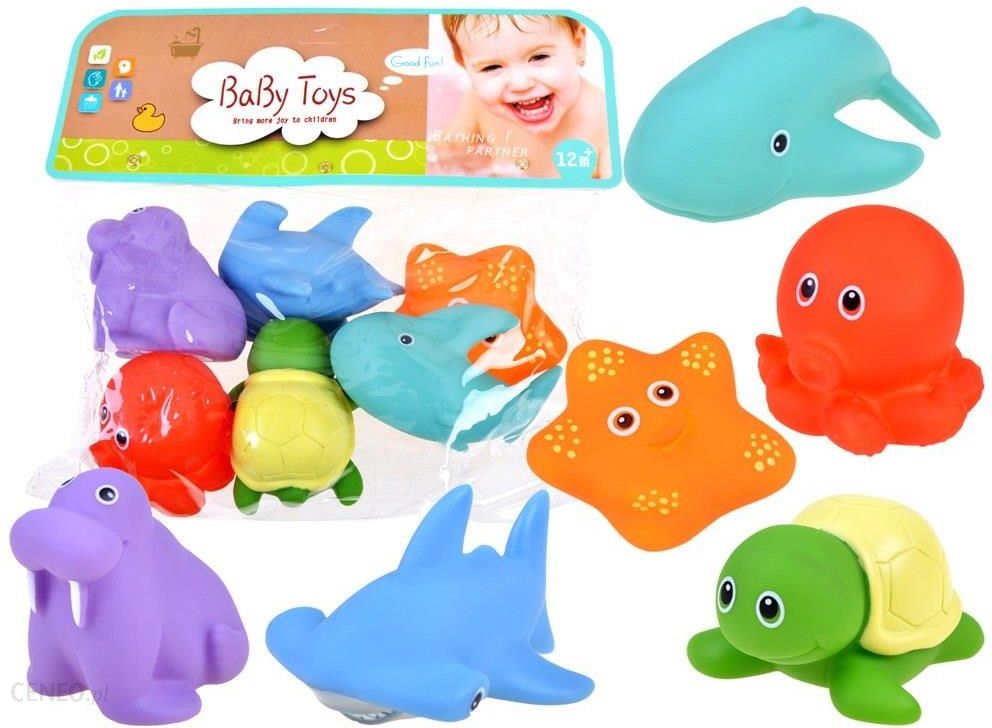 Zestaw gumowych zwierzątek morskich przyda się podczas tworzenia zabaw z charakterem morskim. Gumowe zabawki to zwierzątka, które żyją na co dzień w wodzie. Dzięki niewielkiemu gabarytowi dziecko będzie mogło mieć zabawkę zawsze przy sobie podczas podróży do przedszkola, piaskownicy na wycieczkę na plażę.Zestaw zawiera:- pomarańczowa rozgwiazda- niebieski rekin młot- miętowy wieloryb- zielony żółw z żółtą skorupą- czerwona ośmiornica- fioletowy morsSześć uroczych zwierzaków przyda się podczas codziennych zabaw w kąpieli, na placu zabaw itp. Kolorowe zwierzątka zostały zapakowane w przeźroczyste opakowanie.