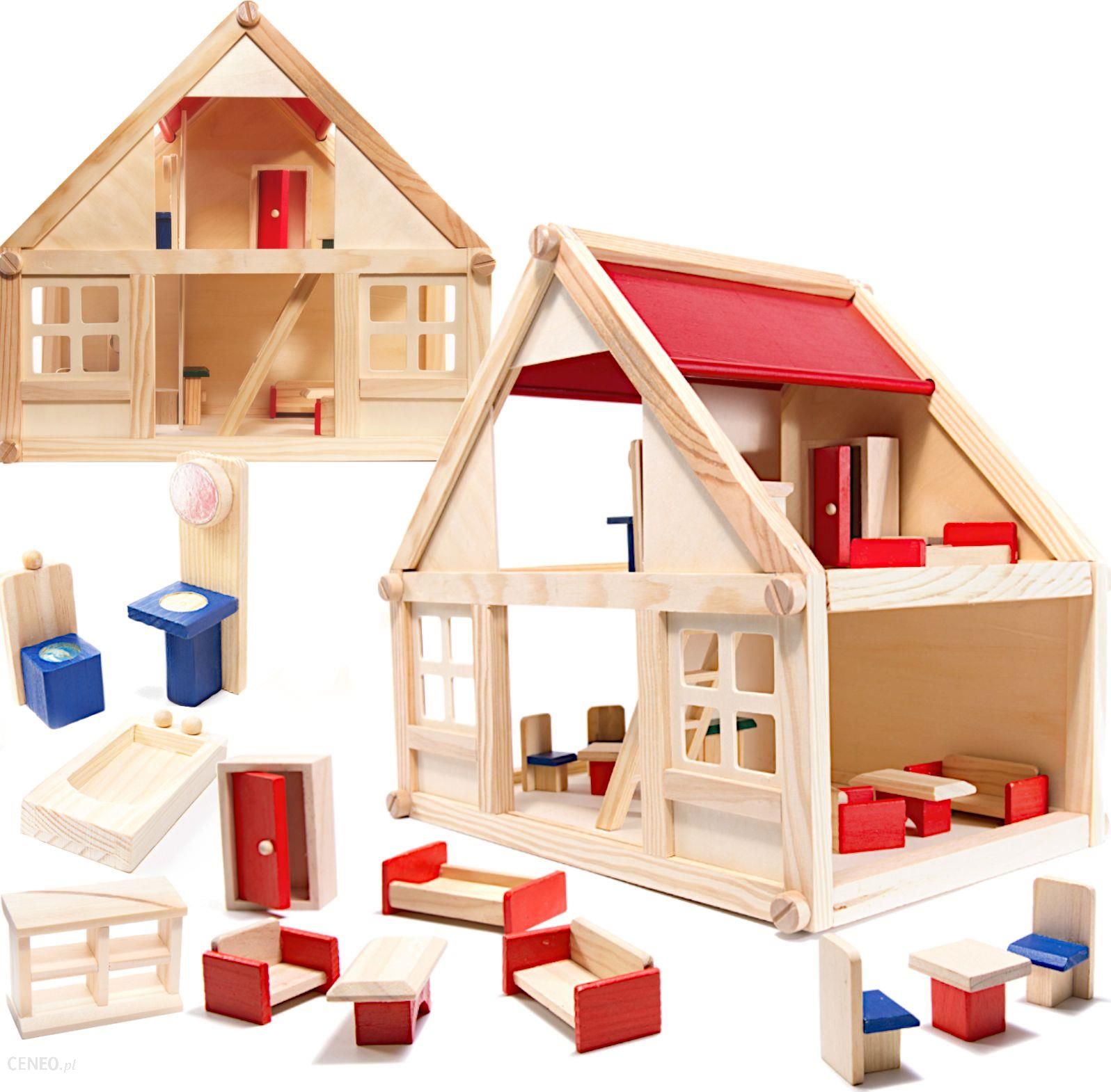 DREWNIANY DOMEK DLA LALEK 40cmKtóre dziecko nie marzy o pięknej willi dla swoich lalek, maskotek i figurek, w której będzie mogło również ugościć laleczki swoich przyjaciół?Piękny, przestronny, drewniany domek dla lalek, wykonany z dbałością o każdy szczegół będzie spełnieniem marzeń każdego dziecka.Dwupiętrowa rezydencja została wyposażona w 4 niezależne pomieszczenia, wśród których znajdziesz miejsce na:kuchniełazienkęsypialnięsalonDomek jest z pełnym wyposażeniem.Do zestawu dołączone zostały piękne drewniane mebelki, które będą stanowiły doskonałe uzupełnienie każdego pomieszczenia w domku.Wśród mebelków znajdziesz:?Piękną szafę z otwieranymi drzwiczkami, która świetnie sprawdzi się również do przechowywania cennych drobiazgów Twojej pociechy.?Łóżko?Komodę?Półeczkę?Szafkę nocną?2 krzesełka?Stolik?Kuchenkę?Wannę?Umywalkę?Toaletę z lusterkiem wykonanym ze srebrnej folii samoprzylepnej.Domek jest do samodzielnego montażu.Złożenie jego zajmie tylko kilka chwil i dostarczy mnóstwo radości.Największą radość dziecku sprawi zbudowanie domu razem z rodzicami.Wspólne budowanie domku nauczy dziecko współdziałania i wspomoże rozwój kompetencji społecznych dziecka.Kreatywna zabawka, przy której nie ma czasu na nudę.Swoim prostym kształtem i materiałem wykonania świetnie wpisuje się z zabawki typu Montessori.Domek można udekorować w dowolny sposób.Powieś własnoręcznie zrobione firanki, rozłóż dywanik, pomaluj ściany!Puść wodze fantazji i zaaranżuj własne wnętrze.Zabawa w architekta wnętrz z pewnością dostarczy mnóstwo radości.Na ścianach możesz namalować, co tylko zechcesz. Udekoruj domek w dowolny sposób, stwórz swój własny, niepowtarzalny projekt.Jakość i precyzja wykonania zachwyca szczegółami.Dobra zabawa to bezpieczna zabawa!Wszystkie elementy domku zostały starannie wyszlifowane w taki sposób, aby podczas zabawy dziecko nie wbiło drzazgi w rączki.Domek nie tylko zagwarantuje świetną zabawę, ale również będzie wspaniałą dekoracją do pokoju dziecięcego.Prostota wykonania i stonowana kolorystyka wpasuje się w każde wnętrze.Zabawa domkiem pobudza wyobraźnię, zachęca do kreatywnego i nieszablonowego myślenia, a także doskonale rozwija zdolności manualne u najmłodszych.Wymiary: 40,5cm x 26,5cm x 38cmWymiary opakowania: 43cm x 40,5cm x 8cmTworzywo: drewnoInstrukcja (PDF)