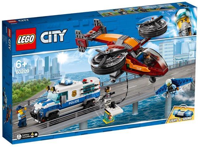 Odzyskaj skradzione klejnoty w emocjonującym zestawie dla dzieci Rabunek diamentów! Patroluj ulice miasta LEGO® City z lotu ptaka w niesamowitym zestawie 60209 Rabunek diamentów. Znajdziesz w nim policyjną furgonetkę opancerzoną z otwieranym dachem, klockiem ze światłem i dźwiękiem (nowość na styczeń 2019 r.), celą więzienną i wyciąganym sejfem z klejnotem. Ten emocjonujący zestaw policyjny LEGO City zawiera także policyjny plecak odrzutowy ze skrzydłami, helikopter złodziejaszków z obrotowymi wirnikami, plastikową liną do wspinania się i otwieranym kokpitem, a także cztery minifigurki. W zestawie cztery minifigurki LEGO® City: dwoje funkcjonariuszy policji powietrznej i dwoje złodziejaszków. W komplecie policyjny plecak odrzutowy ze skrzydłami, policyjna furgonetka opancerzona z otwieranym dachem, klockiem ze światłem i dźwiękiem (nowość na styczeń 2019 r.), celą więzienną i wyciąganym sejfem z klejnotem, a także helikopter złodziejaszków z dwoma obrotowymi wirnikami, otwieranym kokpitem i plastikową liną, za pomocą której można ukraść sejf. Akcesoria: klejnot, trzy hełmy z podnoszonymi wizjerami, czapka, piła tarczowa i kajdanki. Naciśnij klocek ze światłem i dźwiękiem na policyjnej furgonetce, a inne samochody zjadą Ci z drogi. Zakręć wirnikami helikoptera i udaj, że zawisa on nad policyjnym pojazdem. Policyjna furgonetka opancerzona ma ok. 8 cm wysokości, 17 cm długości i 8 cm szerokości. Plecak odrzutowy ze skrzydłami ma ok. 9 cm długości i 4 cm szerokości. Helikopter złodziejaszków ma ok. 10 cm wysokości, 21 cm długości i 20 cm szerokości. Liczba elementów: 400 Wiek: +6 lata Grupa LEGO to jedna z najbardziej rozpoznawalnych firm z branży zabawek dla dzieci. Firma LEGO założona została w 1932 roku w Danii przez Olego Kirka Christiansena. Klocki produkowane przez Grupę LEGO słyną z wysokiej jakości i doskonałej precyzji. Grupa LEGO jest jednym z nielicznych producentów, który większość swoich zabawek produkuje wciąż w Europie (Dania i Czechy). Zabawki sygnowane znakiem LEGO® słyną jako nieliczne obecnie zabawki wielopokoleniowe – ze względu na ich legendarną trwałość i kompatybilność, zestawami swoich rodziców z równą pasją bawić się będą ich dzieci! LEGO® City to najpopularniejsza seria duńskiego producenta, oparta na motywie życia w mieście LEGO® City! Dzięki uniwersalnemu motywowi, dzieci mogą budować maszyny, pojazdy i budowle znane z otaczającego ich świata. Dzięki podziałowi na pomniejsze serie takie jak: LEGO® City Policja, LEGO® City Straż Pożarna, LEGO® City Lotnisko, LEGO® City Straż Przybrzeżna i wiele innych, każdy maluch znajdzie tu coś dla siebie. Zróżnicowane zadania mogą rozgrywać się na lądzie, pod nim, w powietrzu i na wodzie – co doskonale wzbogaca świat LEGO® City i czyni go niezwykle kompleksowym i realistycznym. Polecamy!