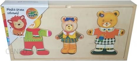 Układanka drewniana – Misie z dzieckiemZabawka edukacyjna rozwija i kształtuje wyobraźnie, zdolność kojarzenia i zdolności manualne dziecka. Trzy misie: rodzice z dzieckiem, można je przebierać w różne ubranka.Wszystkie elementy znajdują się poręcznym drewnianym pudełku.Stworzenie własnego zestawu ubioru dla misia będzie dla dziecka dobrą zabawą. Buźki misia wyrażają różne emocje. Poprzez uśmiechnięte, czy smutne buzie, dziecko uczy się nazywania emocji.Informacje o produkcieNr katalogowy1506498Marka (Zabawki) BrakRodzaj (puzzle) DrewnianeLiczba elementów 54Wymagania wiekowe od 10 miesięcyPłeć (zabawki) Dziewczynki i chłopcyPozostałe parametryWymiary opakowania: 28 x 4.1 x 14 cm