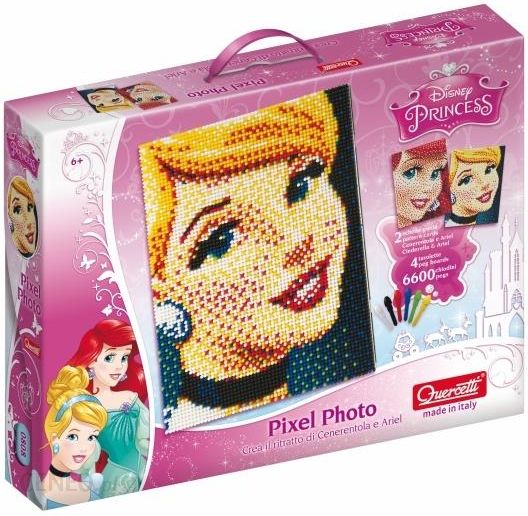 Tworzenie mozaiki poprzez wstawianie kołeczków w perforowaną tablicę jest wspaniałą i twórczą zabawą. W skład zestawu wchodzi: plastikowa ramka o wymiarach 25x33cm, 4 perforowane tabliczki, 6600 kołeczków Ø-4mm w 6 kolorach, 4 arkusze które po umieszczeniu na tabliczkach wskażą nam gdzie wbijać kołeczki. Wszystkie elementy wykonane są z tworzywa wysokiej jakości, są elastyczne i zmywalne, nietłukące i bezpieczne.Pixel Photo Frozen pozwala na stworzenie portretów Elsy lub Anny ze słynnych kołeczków Quercetti. Wystarczy wybrać swoją ulubioną bohaterkę bajki i umieścić wycięte szablony z jej wizerunkiem na perforowanych tabliczkach. Następnie 6600 kołeczków wbić w oznaczone odpowiednim kolorem pola i gotowe!Zestaw zawiera:- 2 szablony do wyboru,- 4 tabliczki,- kołeczki w 6 kolorach,- plastikową ramkę do oprawienia gotowego dzieła o wymiarach 25.0 x 33.0 cm.