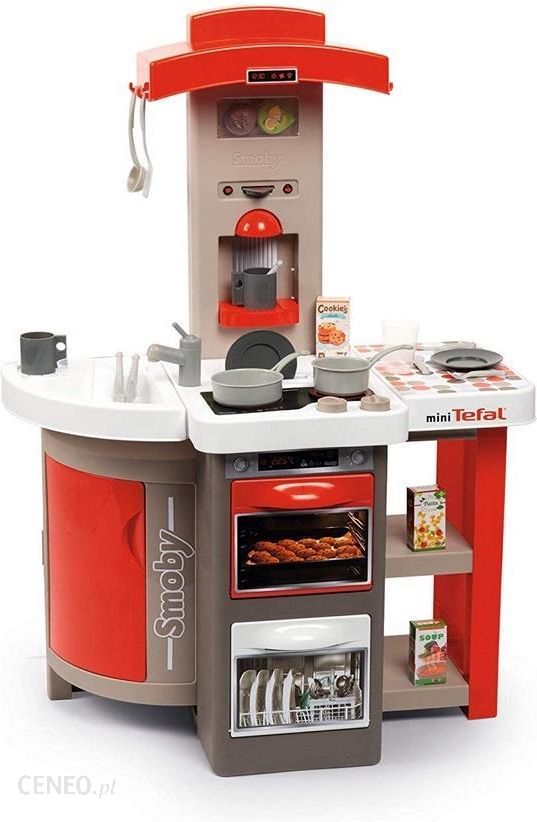 Elektroniczna, Składana Kuchnia mini Tefal OpenCook 312202 to doskonały zestaw do zabawy w gotowanie. Kuchnia posiada nowoczesną stylistykę i kolorystykę. Zestaw składa się z niezbędnego wyposażenia i funkcji, które sprawiają, że zabawa staje się odwzorowaniem czynności, które dzieci obserwują w życiu codziennym i tak chętnie naśladują. Akcesoria stworzono z myślą o przedszkolakach, by zabawa stała się komfortową i wyjątkową przygodą. Funkcje i przedmioty to imitacje zaczerpnięte z prawdziwych kuchni. Zabawa kuchnią daje dzieciom poczucie samodzielności, rozwija ich wyobraźnię i kreatywność, a w grupie daje możliwość budowania interakcji społecznych.Cechy i zawartość zestawu:Elektroniczna, składana kuchnia z efektami dźwiękowymiCiekawa, nowoczesna kolorystyka: biała, szara, czerwonaFunkcjonalny blat z przestrzenią do szykowania i serwowania potrawZlewozmywak z kranemImitacja płyty grzewczej z odgłosem gotowaniaSuszarka na talerze i sztućcePokrętła do sterowania kuchenką z dźwiękiem „cric crac”Komin z pochłaniaczem z wbudowanym zegarem i ekspresem na kapsułki oraz miejscem do przechowywania kapsułekPiekarnik, lodówka, zmywarka – z otwieranymi drzwiczkami Półeczki na akcesoria22 akcesoria (2 rondle, 2 talerze, 2 widelce, 2 noże, 2 łyżeczki, 2 kubki, 2 szklaneczki, 3 kapsułki, 2 przybory do gotowania, 3 produkty spożywcze. Wszystkie akcesoria wykonane są z plastiku i/lub tektury)Zawiera kółka do wygodnego przenoszeniaPo skończonej zabawie można ją przechowywać w dowolnym miejscu, dzięki funkcji składaniaWymiar kuchni rozłożonej: ok. 65 x 36 x 93 cmWymiar kuchni złożonej: ok. 34 x 36 x 60 cm