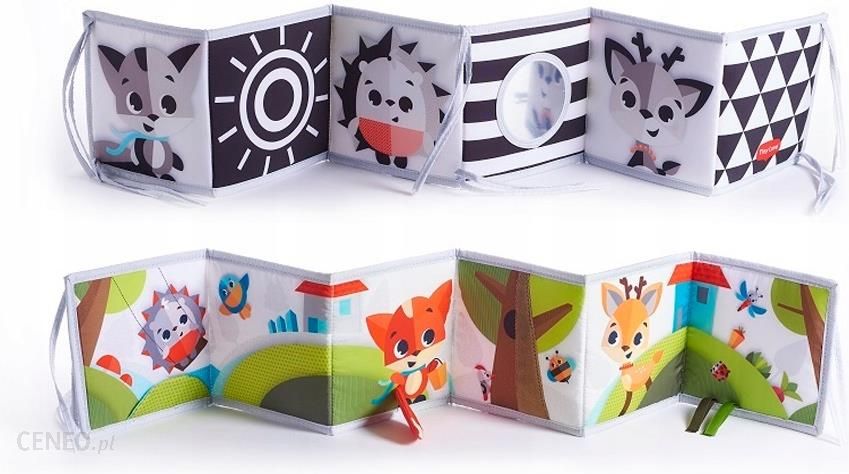 Książeczka dla dzieci z aktywizującymi elementami i dwiema stronamiz jednej strony książeczka jest czarno-biała, z drugiej – kolorowaKsiążeczka wspiera zmysł wzroku dziecka dzięki kontrastującymczarno-białym barwomz jednej strony, idealnie dostosowanym do młodszych dzieci i kolorowym, zabawnym designem przeznaczonym dla starszych dzieci z drugiej.Pomaga wydłużyć czas spędzania dziecka na brzuszku dzięki aktywizującym elementom, które pomogą dziecku spędzać więcej czasu na brzuszku, wzmacniając tym samym mięśnie ramioni karku.Stymuluje zmysły dziecka dzięki zabawnym teksturom, kontrastującym kształtom i i kolorowym postaciom, które zapewniają niezwykle ważną stymulację zmysłu wzroku i dotyku.Książeczka jest łatwa do złożenia i zabrania ze sobą, dokądkolwiek z maluszkiem zmierzacie, zapewniając mu zabawę i aktywizując go również w podróży. Pasuje do większości wózków, kołysek. Dzięki temu ROZWÓJ JEST ZAWSZE W ZASIĘGU RĘKI dziecka.Elementy aktywizujące książeczki:LusterkoKontrastujące biało-czarne ilustracjeZabawa w „a ku ku”Szeleszczący ogon liska ChristopheraDrzewo o ciekawej teksturzeSatynowe wstążkiWskazówki rozwojowe:0-3 miesiące ZMYSŁY – Stymulacja wzrokuCzarno-biała strona oferuje dziecku stymulację wzroku już od narodzin. Umieść książeczkęw odpowiedniej odległości od dziecka (ok. 20-30 cm) i pozwól mu skupić wzrok na kontrastujących kształtach i lusterku.3 miesiące+ RUCHY PRECYZYJNE – Mięśnie palców i dłoniWzrok dziecka jest już rozwinięty na tyle by mógł korzystać z kolorowej strony książeczki odkrywając różnorodne niespodzianki (satynowe wstążki, szeleszczący ogonek i inne) podczas gdy rozwijają się ruchy precyzyjne.0-6 miesięcy + RUCHY CAŁEGO CIAŁA – Czas na brzuszkuObie strony książeczki zaangażują i pobudzą dziecko we wczesnych i późniejszych etapach rozwoju, pomagając wydłużyć czas na brzuszku. Umieść dziecko na brzuszku z książeczką na wyciągnięcie ręki i pozwól mu odkrywać zabawkę zmysłami wzroku i dotyku.3-6+ miesięcy KOJARZENIE – Trwałość obiektuGranie w a ku ku to świetny sposób, aby pomóc dziecku w zrozumieniu idei trwałości obiektu. Dzieci zdają sobie sprawę, że rzeczy pozostaną tam, gdzie są, nawet jeśli ich nie widać.Każdy produkt marki Tiny Love stworzony jest z myślą o Siedmiu Elementach Rozwoju dziecka, wskazując rodzicom najlepszą drogę do tego, by ich maluch rozwijał się prawidłowo.Ten produkt rozwija następujące elementy:Zmysły – kontrastująca czarno-biała strona została stworzona, aby już od narodzin wspierać wzrok dziecka. Kolorowa strona, z większą ilością detali, jest wyposażona w różnorodne elementy, które oferują stymulację zmysłu wzroku i dotyku starszego dziecka. Obie strony książeczki wspierają rozwój twojego rosnącego maluszka.Ruchy całego ciała – atrakcyjne wzory i różnorodne elementy zaintrygują i zachęcą dziecko do odkrywania i dotykania książeczki, wydłużając czas dziecka na brzuszku. Gdy dziecko leży na brzuszku podnosząc główkę wzmacnia mięśnie szyi i mięśnie karku.Ruchy precyzyjne – elementy widoczne na kolorowej stronie książeczki zachęcają dziecko do wyciągania rąk, chwytania, ciągnięcia i odkrywania, tym samym dziecko ćwiczy mięśnie dłonii palców rozwijając umiejętności motorycznych.Kojarzenie – zabawna gra w a ku ku uczy dzieci idei trwałości obiektów, pomagając im uświadomić sobie, że rzeczy, które są poza zasięgiem wzroku, nadal istnieją.