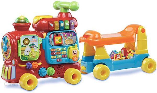 Vtech Pociąg Podróżnika JeździkPociąg Podróżnika to zabawka, która dostarcza aż 4 sposoby na zabawę!- Można go pchać, ciągnąć i na nim jeździć- Posiada 13 kolorowych klocków- Klocki uczą nazw liter i ich dźwięków oraz nazw przedmiotów, wzbogacając słownictwo dziecka- Ukryta zjeżdżalnia. Wrzucanie kolorowych klocków sprawia, że Pociąg Podróżnika je policzy!- Klawisze numeryczne i Walki Talkie zapoznają z cyframi, nazwami zwierząt i ich odgłosami- Migoczące przyciski uczą kolorów oraz przedstawiają rodzaje pogody- Wiele ruchomych elementów, które rozwijają umiejętności manualne dziecka